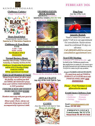 Fiscal Year 2026 Meetings will be held at 10:00 a.m. at the Kendall Square Clubhouse, 9501 SW 171 Avenue, Miami, Florida, on the third Tuesday of each month as follows: